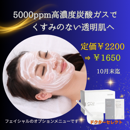 今月末まで行っております『秋の老け肌対策CO2ジェルパックキャンペーン』ベル