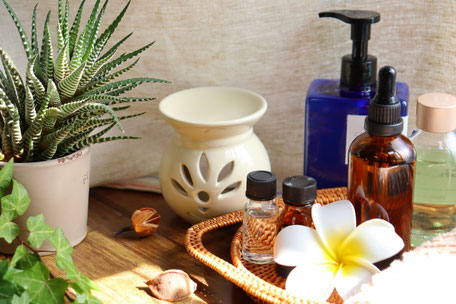 アロマを取り入れる方法は、アロマポットやディフューザーで香りを広げたり、バスオイルとしてお風呂に数滴垂らすのも良いです