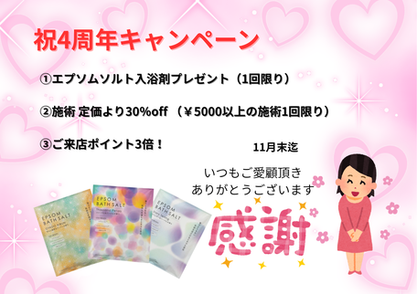 ヒーリングオブエステOasisは11月12日に4周年を迎えます